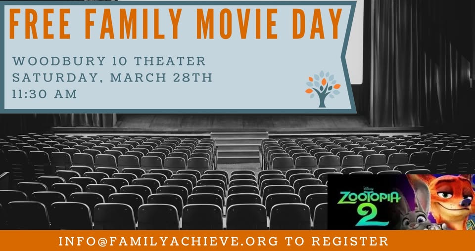 Join Family Achievement Foundation for a free family movie meetup! We will be watching Zootopia 2 and this is a sensory friendly & accessible event.