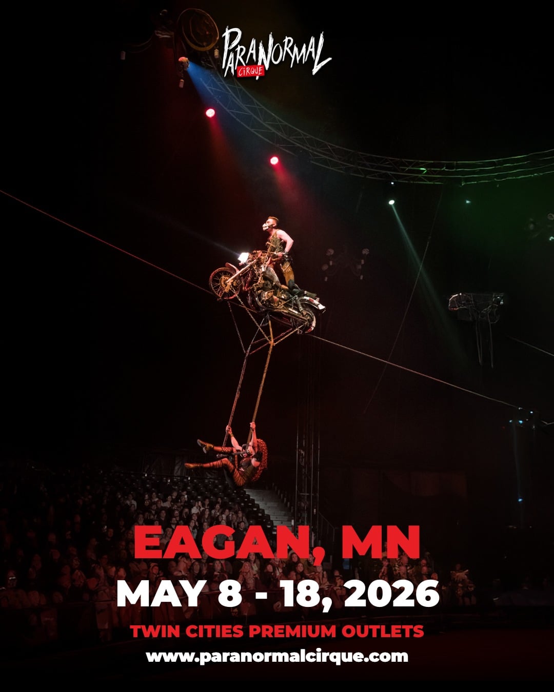 From May 8 to 18, 2026, Paranormal Cirque Inferno takes over Twin Cities Premium Outlets, unleashing a thrilling mix of horror, dark humor, and jaw dropping acrobatics under the Big Top. ![]()